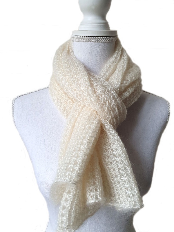 in stockÉcharpe tricotée en fil double dentelle pour avoir une belle épaisseur, en mailles de fausses côtes.